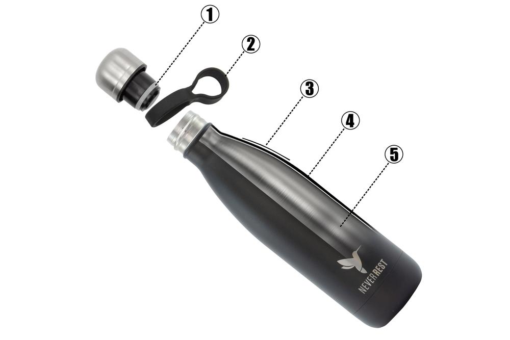 Wir verwenden nur qualitativ hochwertiges Material für unsere ColibriOne Isolier- Trinkflasche bei der Rostfreies Edelstahl der Hauptbestandteil ist. Im Gegensatz zu Plastik- und Aluminiumflaschen, ist 18/8 Edelstahl ein nicht reaktives Metall bestehend aus 18% Chrome und 8% Nickel. Dies ermöglicht die Befüllung jeglicher Art von Getränken, ohne dass sich Mikroplastik oder Chemikalien lösen können. Deshalb haben wir uns bei Neverrest® für die Verarbeitung von qualitativ hochwertigem Edelstahl entschieden. Edelstahl ist langlebig, robust, wiederverwendbar, leicht, bruchsicher, geruchs- und geschmacksneutral. Unser Produkt ist hierdurch